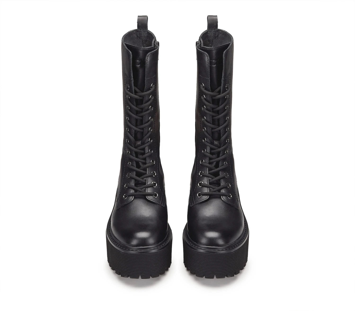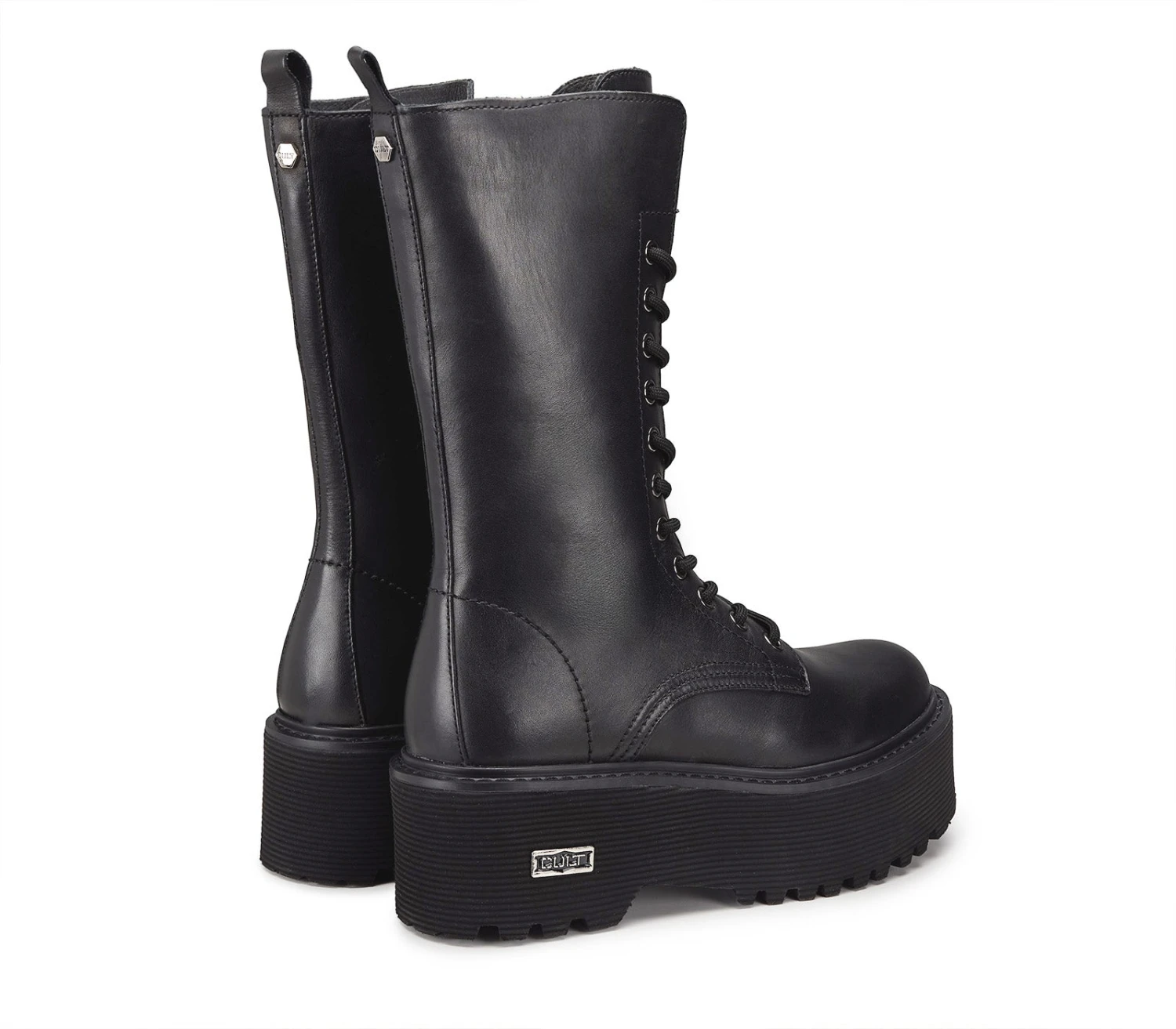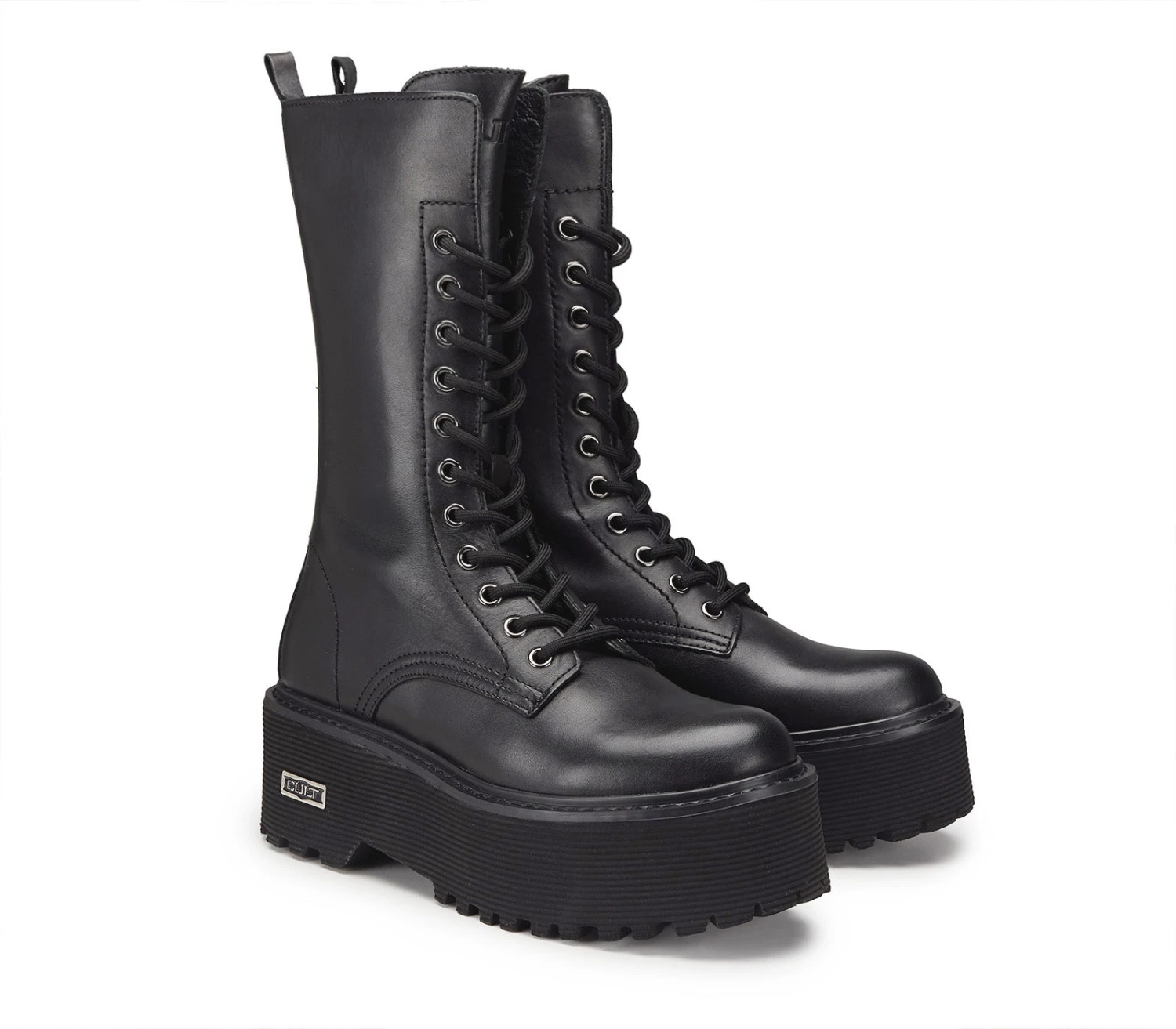 Comodi e dalla linea urban chic questi stivali firmati Cult. In pelle nera, maxi suola, con chiusura tramite stringhe su occhielli color gunmetal, questi stivali saranno il complemento perfetto dei vostri outfit più grintosi.