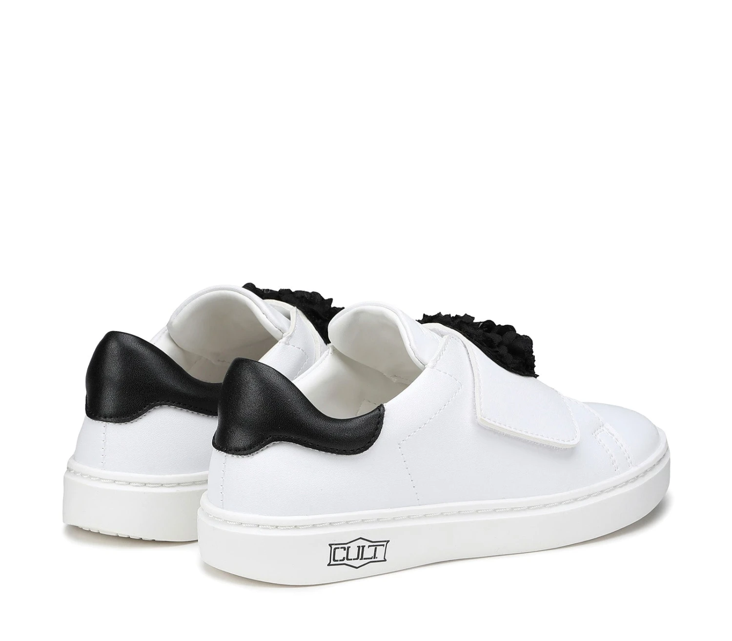 Aggiungete un bel paio di sneakers firmato Cult al guardaroba della vostra bimba. Questo modello presenta la tomaia in eco pelle e chiusura a velcro con un dettaglio a contrasto in tulle.