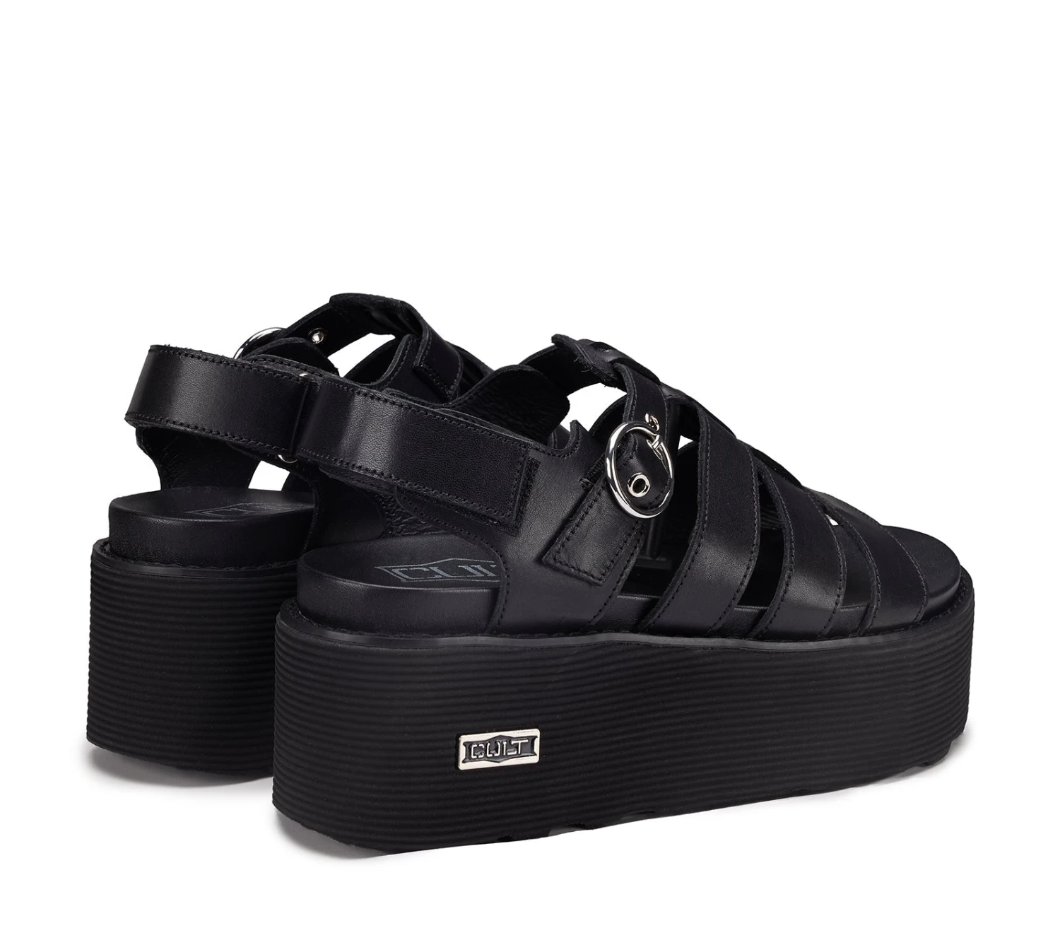 I sandali Nancy di CULT sono un vero must-have per questa stagione. Caratterizzati da una suola platform con logo metallico del brand sulla suola, presentano una tomaia cut-out con fasce in pelle nera e un cinturino posteriore che garantisce una calzata sicura. Dallo stile contemporaneo e minimal, questi sandali sono perfetti per completare look freschi e dinamici, ideali da abbinare a shorts, maxi dress e bluse colorate per un risultato sempre di tendenza.