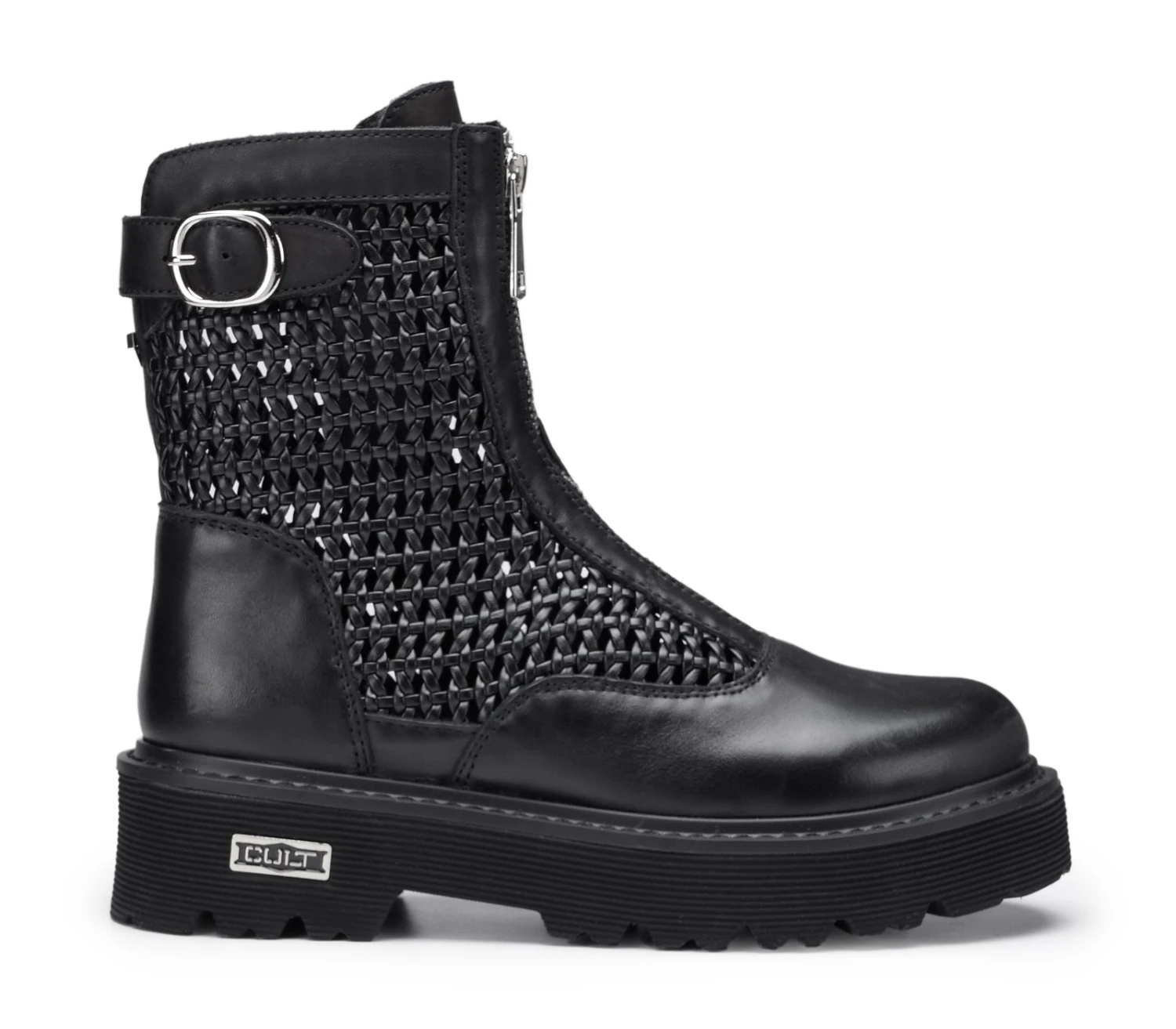 Originali, dall’allure fresca e accattivante questi anfibi in pelle con lavorazione a intreccio firmati Cult sono un must-have per la nuova stagione. Doppia chiusura tramite fibbia metallica laterale e zip frontale, questi irresistibili summer boot presentano un gambale sfoderato e puntale a contrasto in pelle nera liscia per aggiungere un’ ineguagliabile impronta di stile ai vostri outfit.