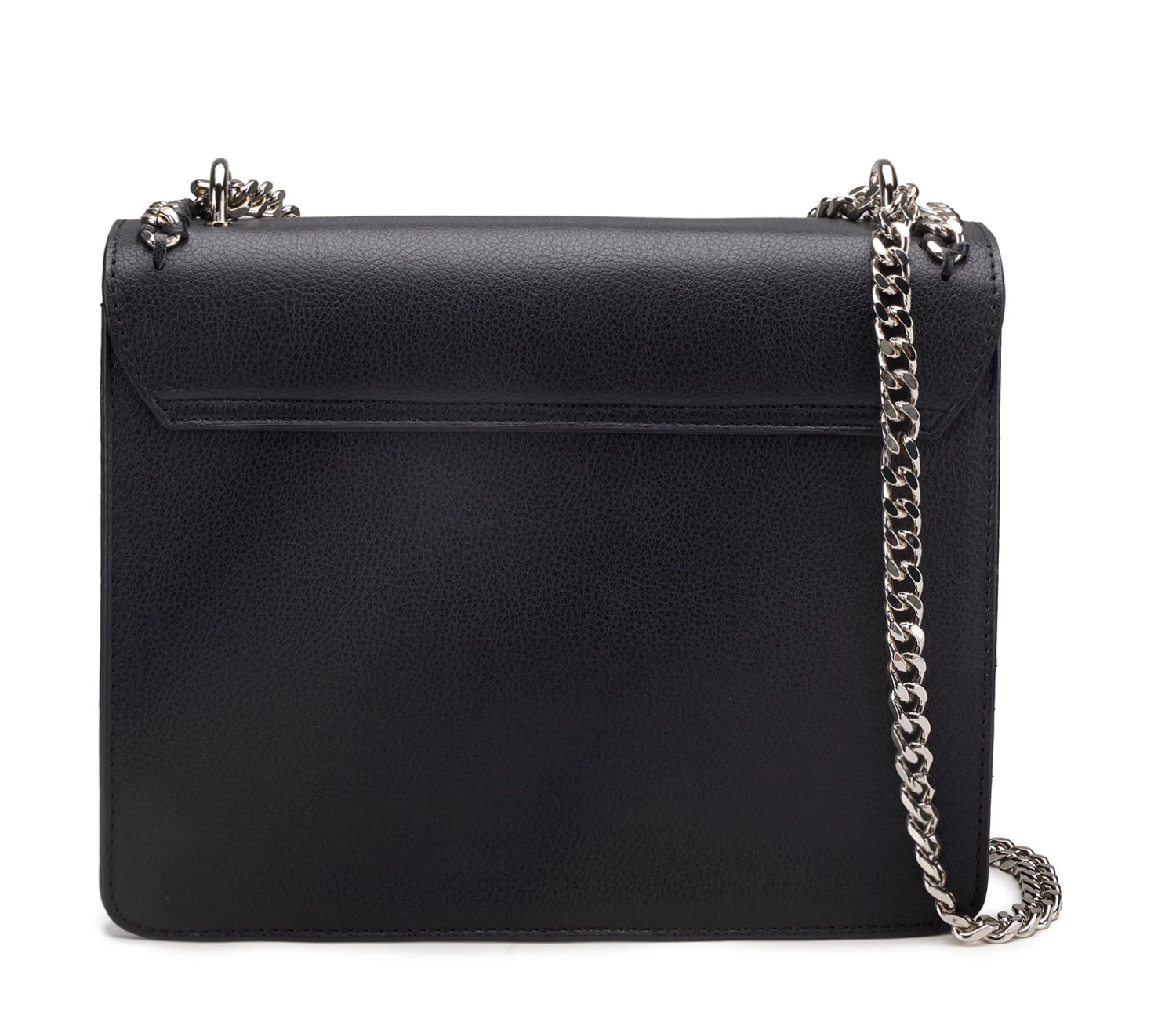 La nuova borsa a tracolla KIM in ecopelle nera firmata CULT, si distingue per la sua linea contemporanea che le conferisce un aspetto moderno e originale. La chiusura con patta e il dettaglio del logo in metallo aggiungono un tocco di carattere, mentre la catena completa il design con un tocco glam-rock. Perfetta per chi cerca un accessorio di tendenza, dallo stile audace e contemporaneo.