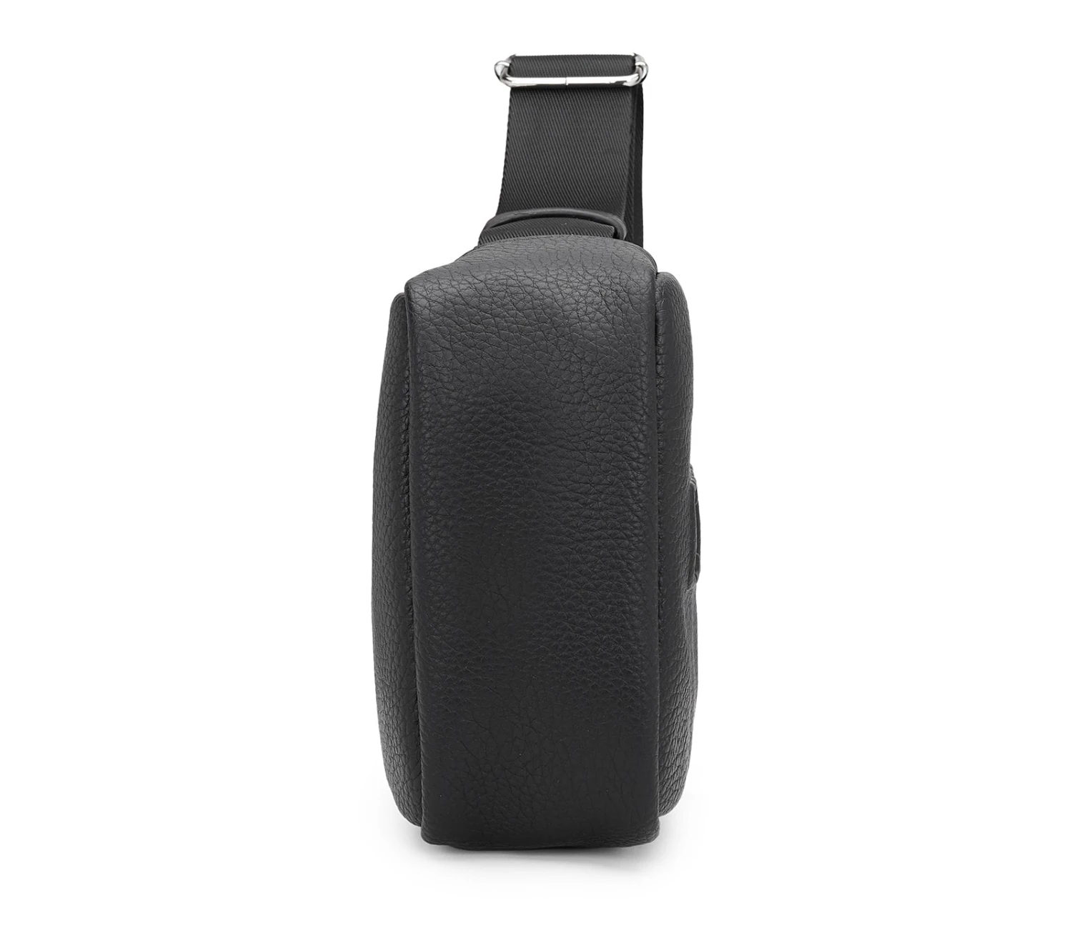 Elegante e portabilissima, la tracolla da uomo di Cult dal design minimal realizzata in ecopelle effetto bottalato. Presenta il logo lettering in rilievo e una chiusura tramite zip per accedere al capiente scomparto interno. Dimensioni 18x22x8,5