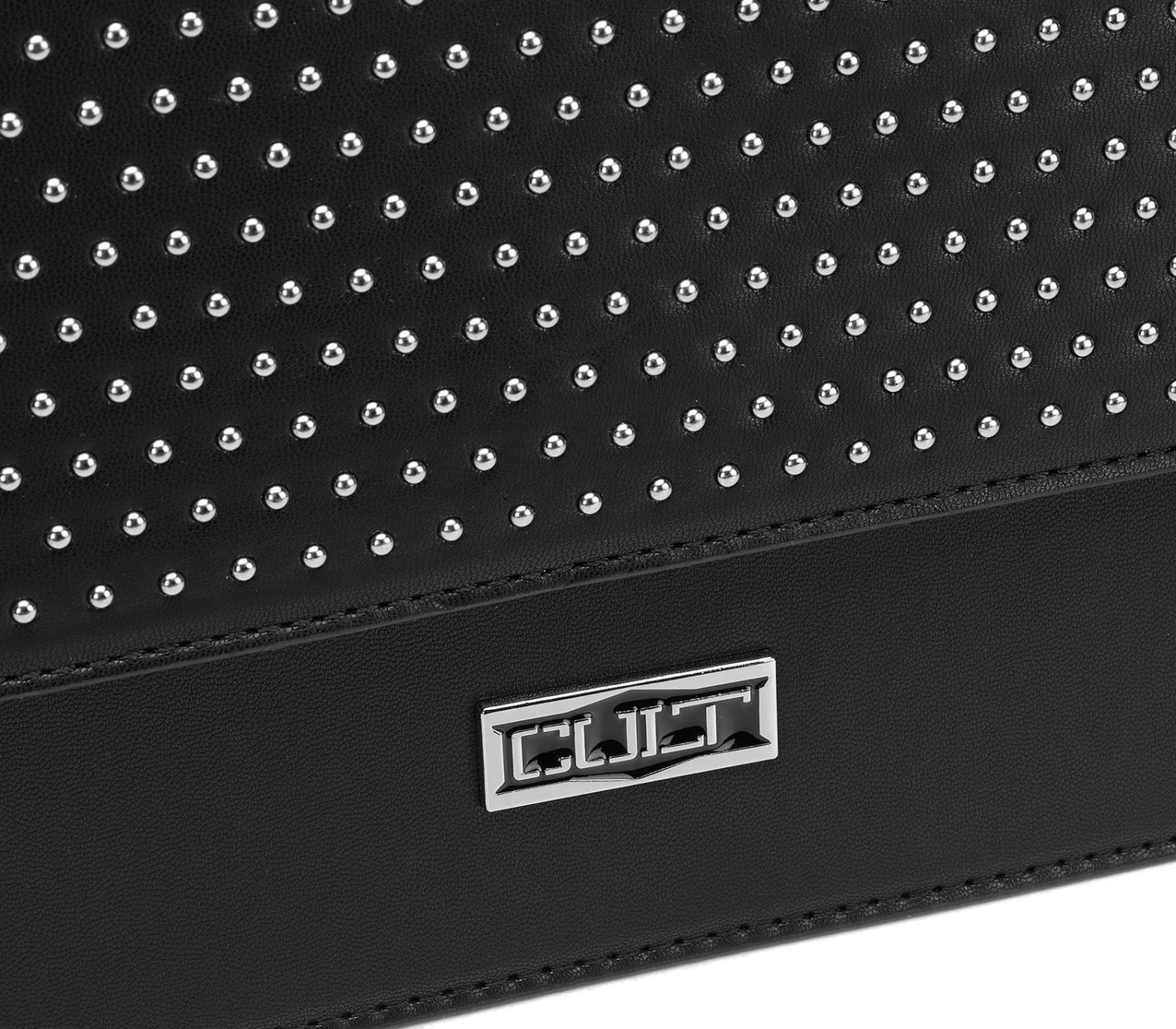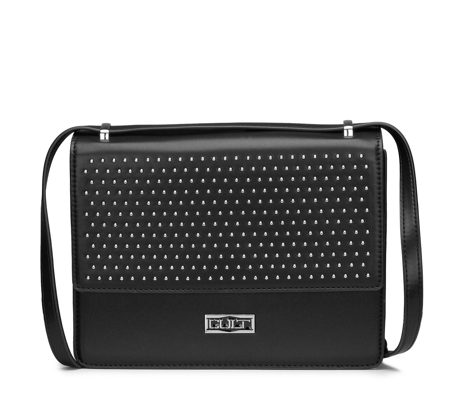 Rivoluzionate il vostro stile con questa nuova borsa a tracolla firmata CULT. Realizzata in ecopelle nera, è caratterizzata da una forma rettangolare, da una tracolla regolabile e dall’applicazione di borchie silver in metallo su tutta la patta per uno stile decisamente glam-rock! Perfetta per impreziosire i tuoi outfit, da abbinare con jeans e t-shirt per un look che non passa inosservato. Dimensioni 24x17x7