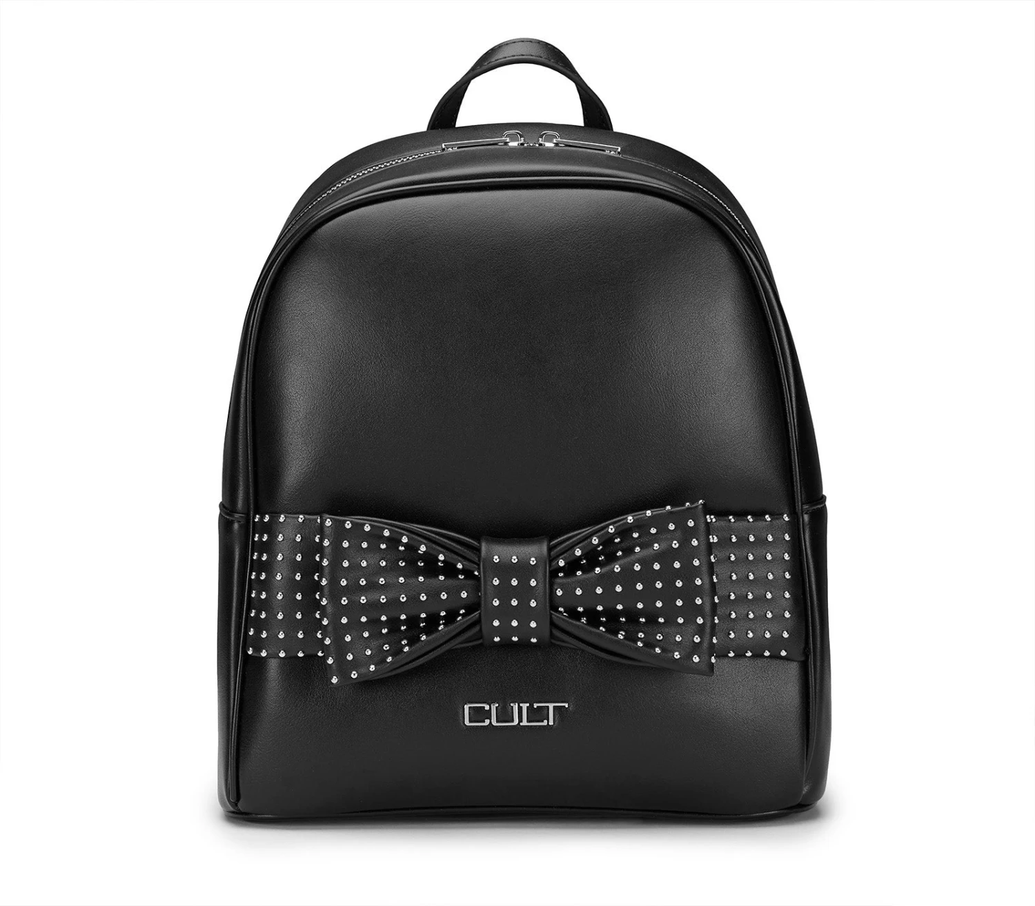 Il romantico zaino BILLIE in ecopelle nera firmato CULT si distingue per la sua linea minimal che gli conferisce un aspetto moderno e originale. La chiusura con zip superiore e il dettaglio metallico del logo lettering in rilievo aggiungono un tocco di carattere, mentre il maxi fiocco con mini borchie in metallo applicato sulla patta, aggiunge al design un elementi di stile. Perfetto per chi cerca un accessorio di tendenza, dal gusto femminile, audace e contemporaneo. Dimensioni: 25x29x10.