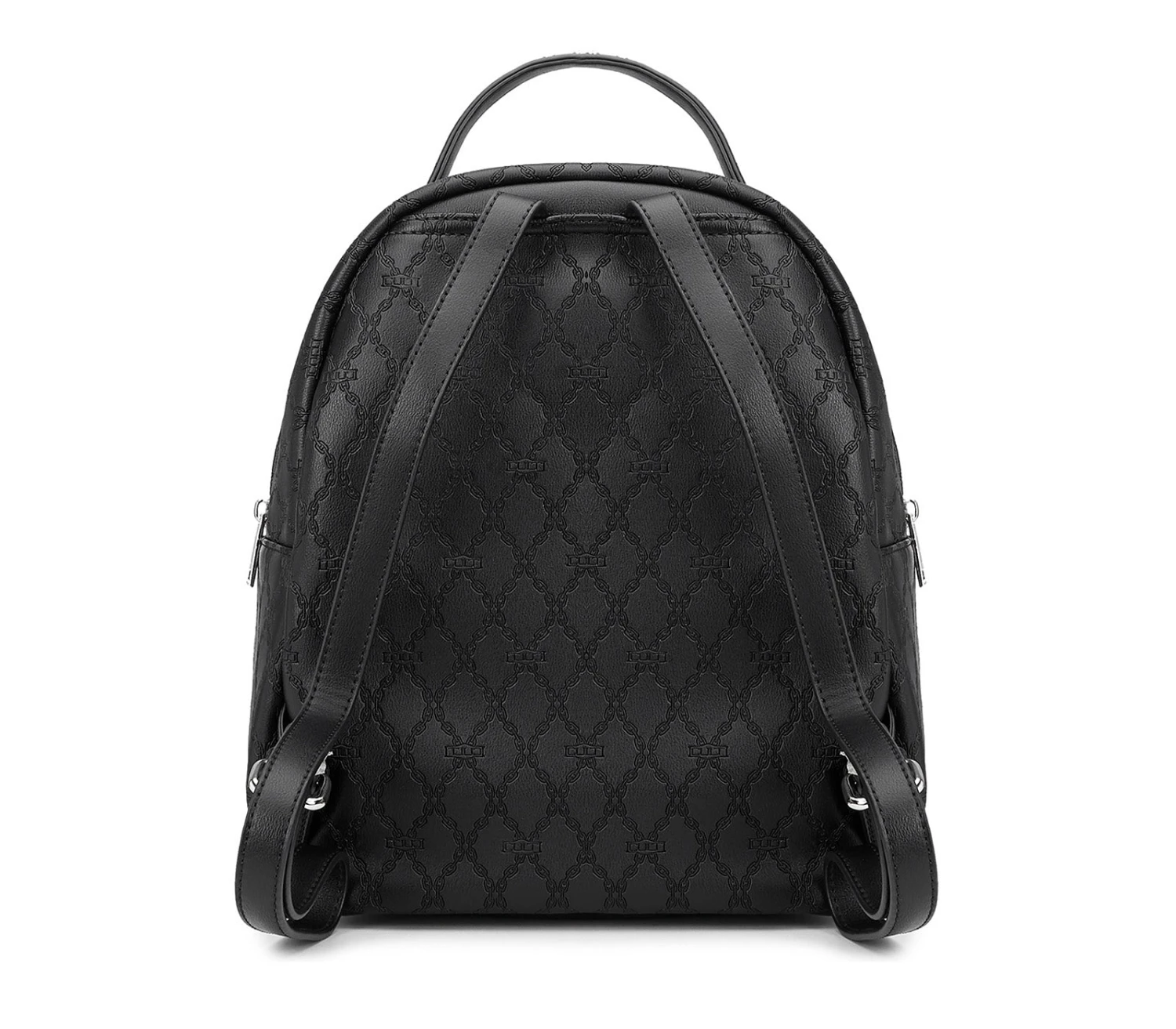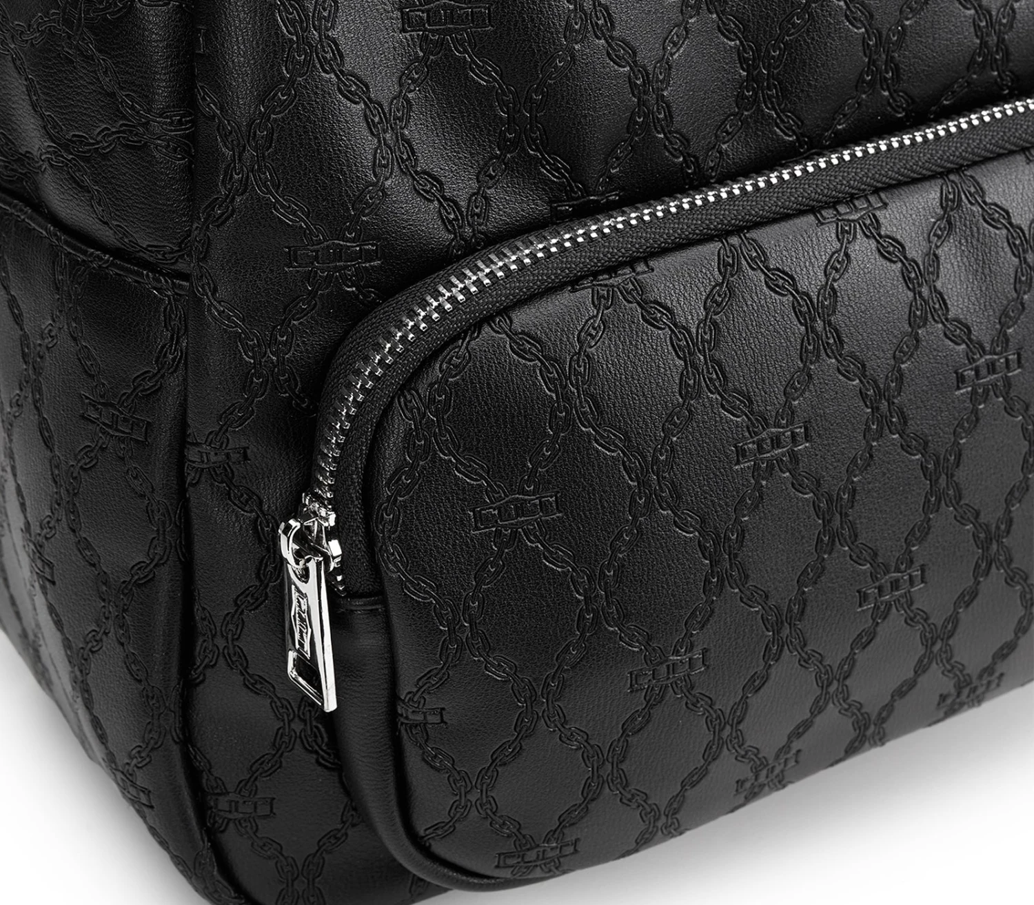 Lo zaino da donna HAYLEY è realizzato in morbida ecopelle color nero con motivo a catena embossed. Il modello è dotato di spalline regolabili e di chiusura a zip superiore. Presenta una tasca esterna frontale con chiusura a zip e uno scomparto interno con due tasche. Ideale per un look glamour in perfetto stile CULT. Dimensioni 25x29x10.