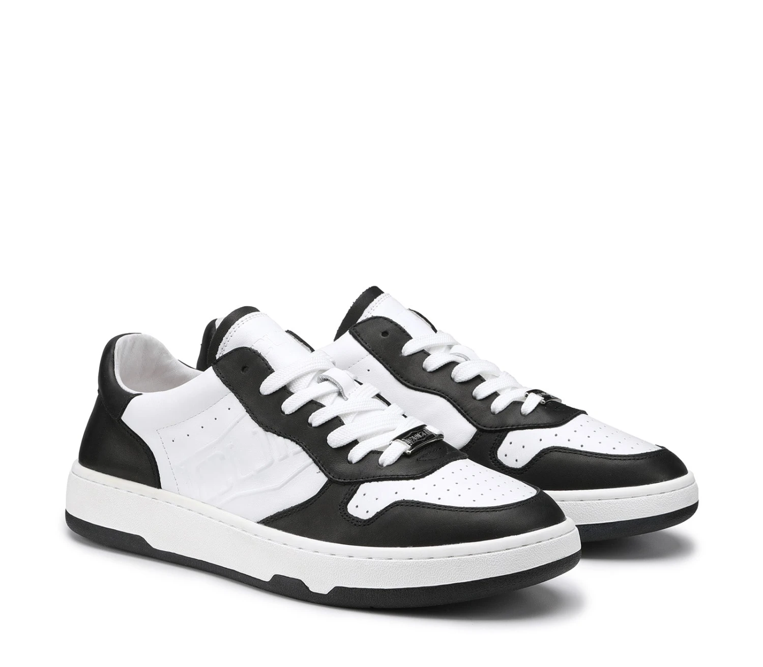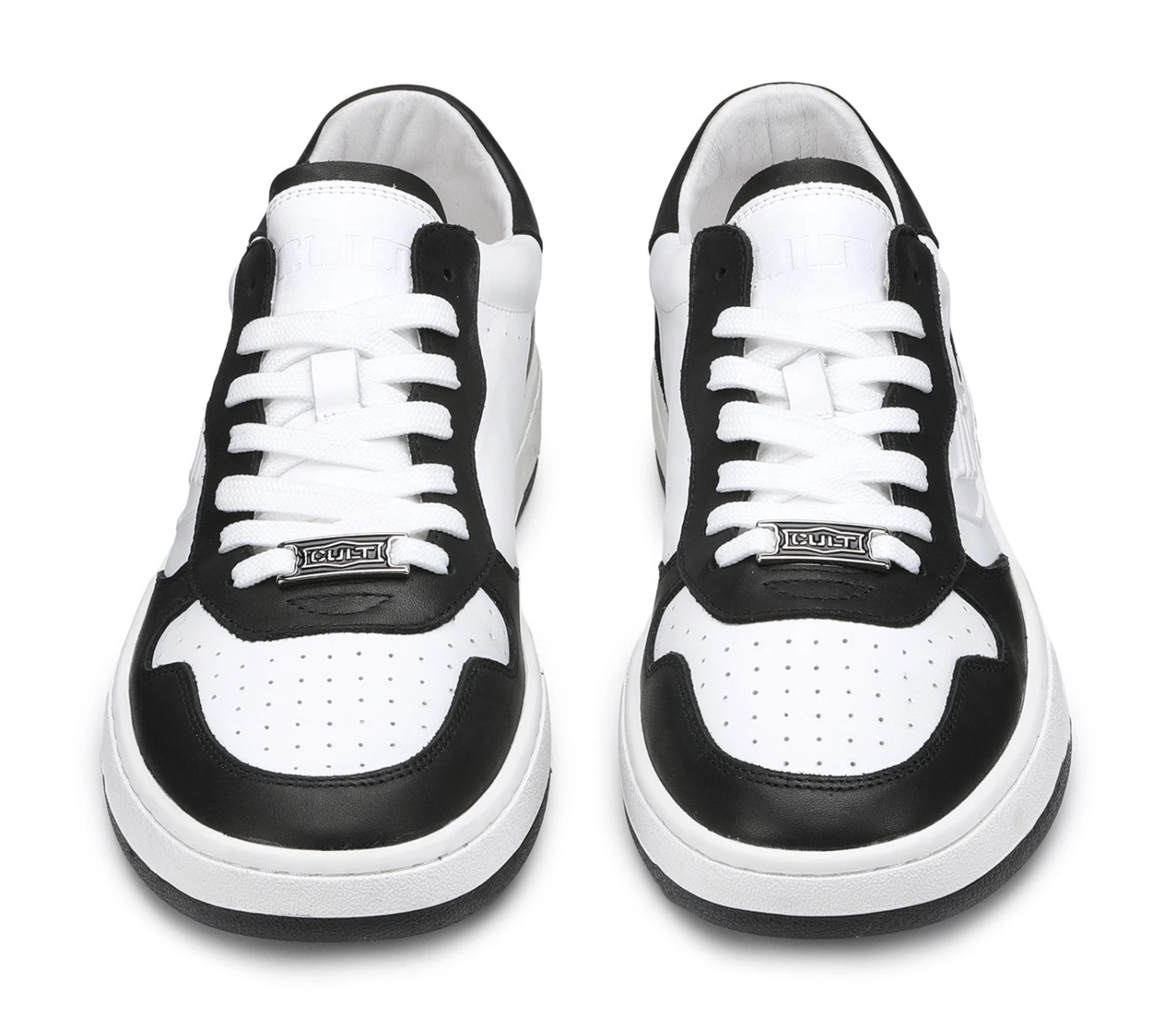 Le sneakers di Cult si esprimono con linee dinamiche e dettagli che richiamano i segni distintivi del brand. Si caratterizza per la tomaia in pelle bicolor con il logo in rilevo sulla parte laterale.