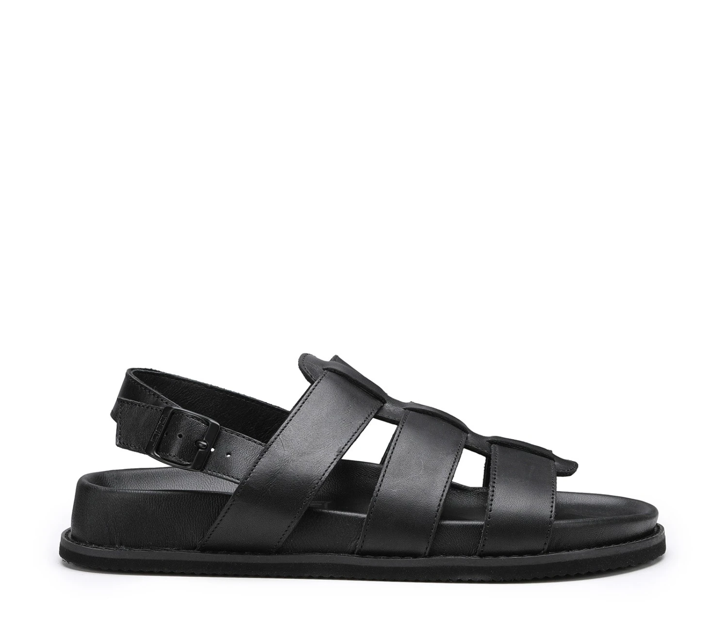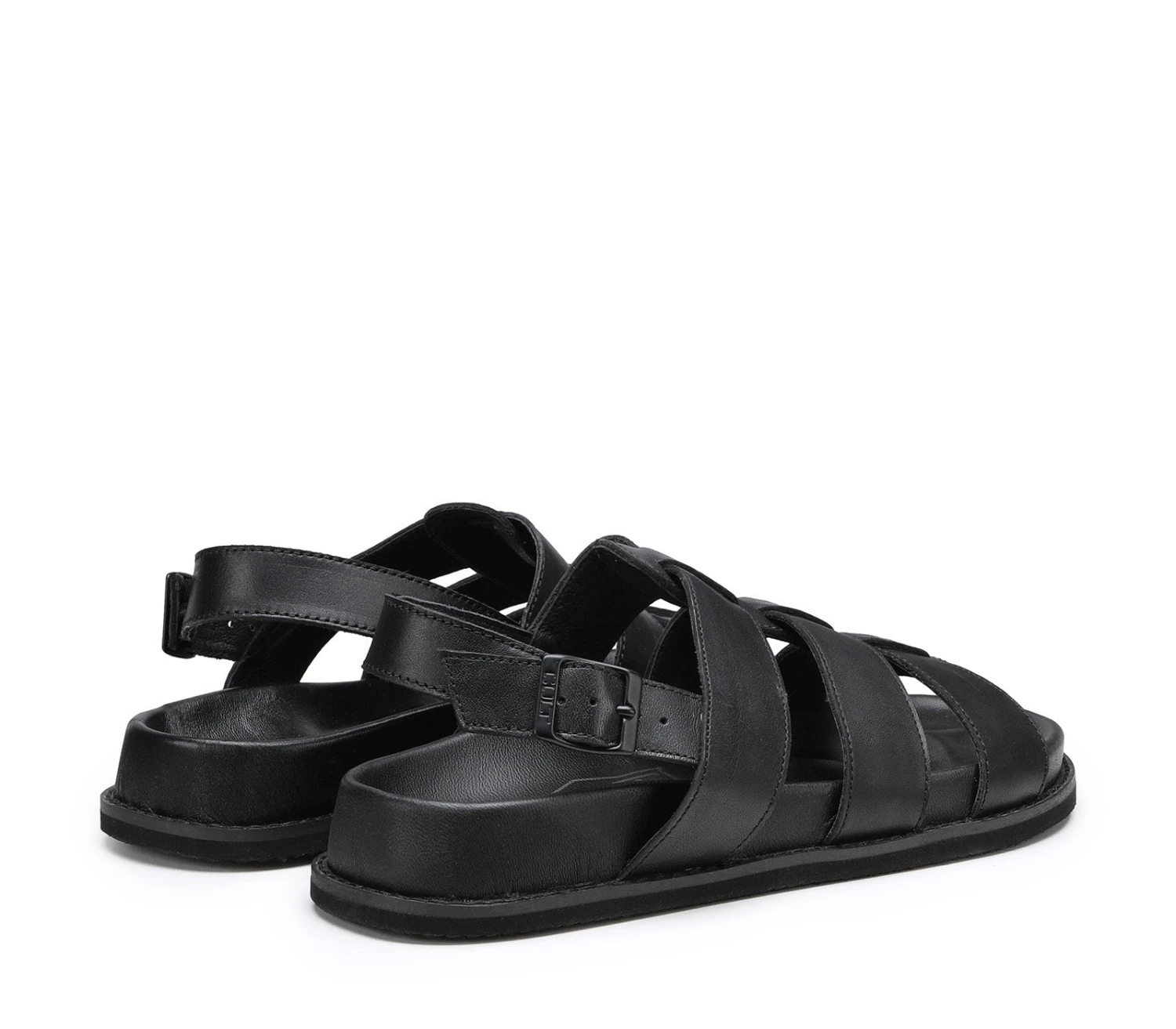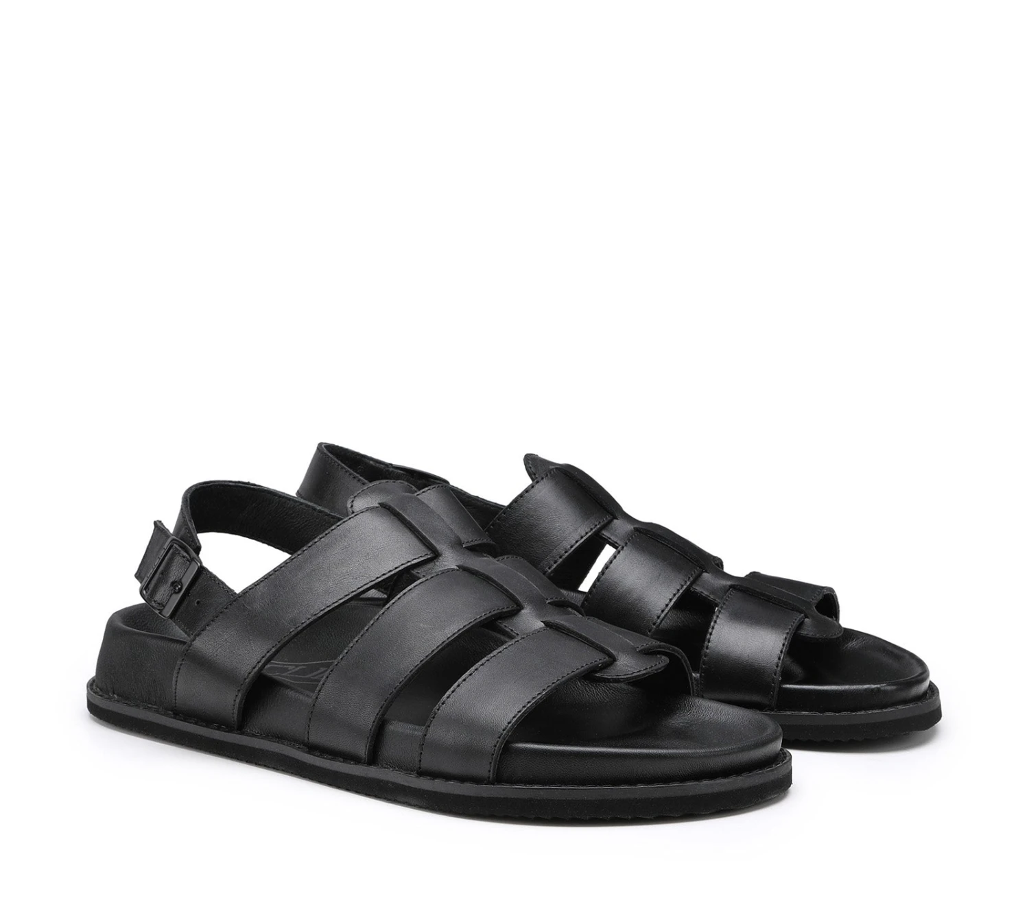 I sandali da uomo di Cult sono realizzati con una tomaia morbida in pelle, che ricorda una forma a gabbia grazie alle fascette sul dorso del piede. Disponibili in nero, presentano una suola in gomma, un puntale arrotondato e aperto e l’iconico logo del brand ton-sur-ton.