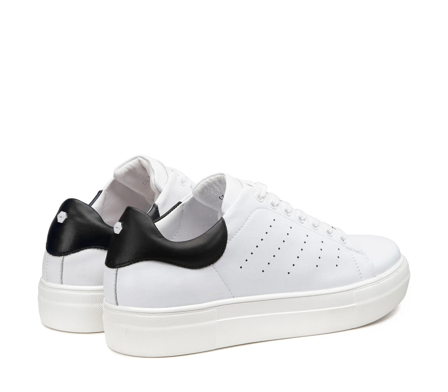 Comode alla moda ed adatte ad ogni occasione queste sneakers della linea Lemmy firmate da Cult. In pelle bianca e banda posteriore a contrasto, queste sneakers saranno il vostro compagno ideale per questa primavera. Da indossare con i jeans o a sotto pantaloni classici per un effetto più informale. Altezza suola 3,7cm