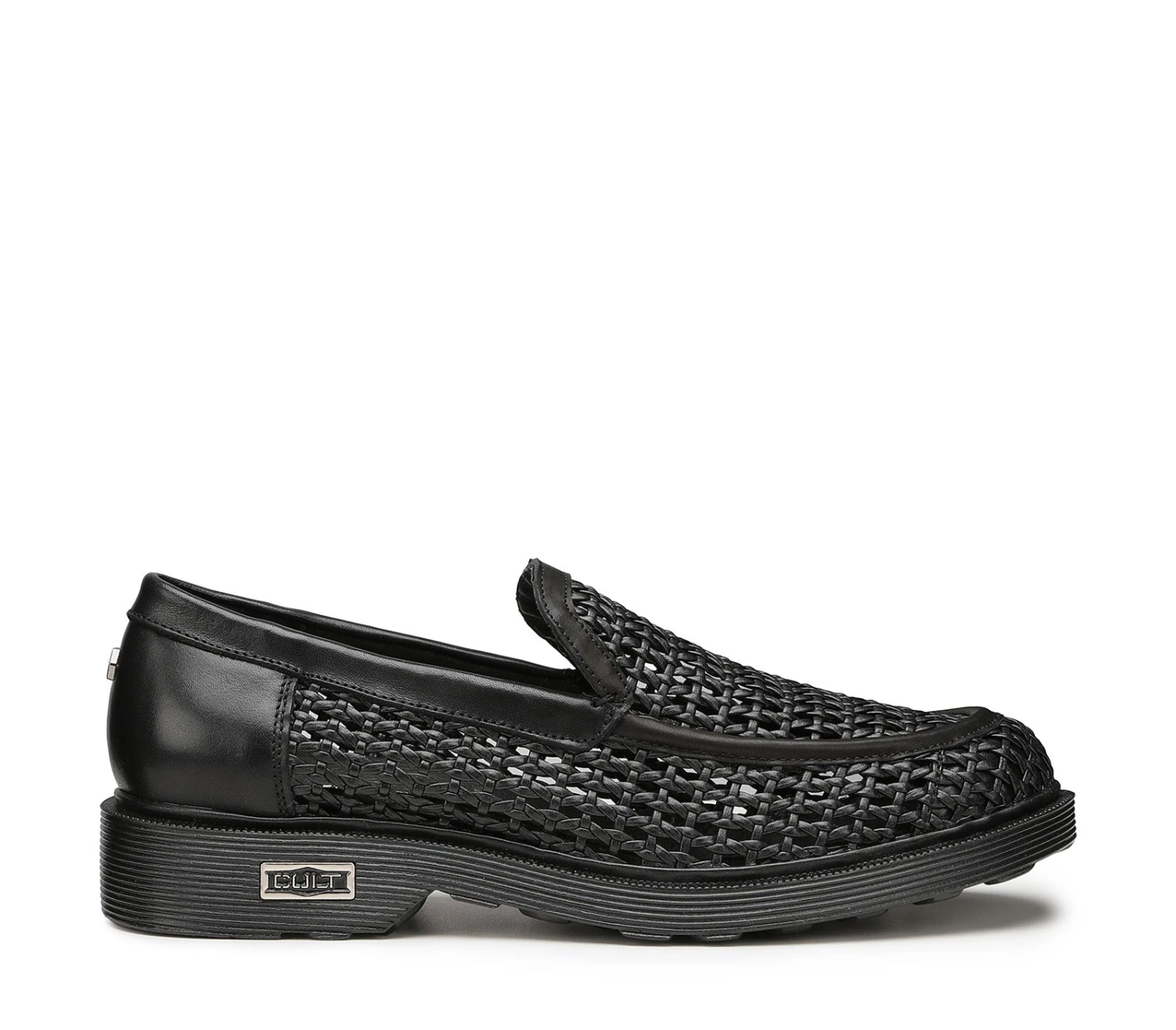 La creatività stilistica si combina con il fascino unico e inimitabile di questi mocassini da uomo firmate Cult per questa stagione. Questo mocassino è realizzato in pelle intrecciata e poggia su una suola in gomma personalizzata con l’iconica targhetta metallica. La costruzione sfoderata rende la scarpa particolarmente indicata per i look estivi.
