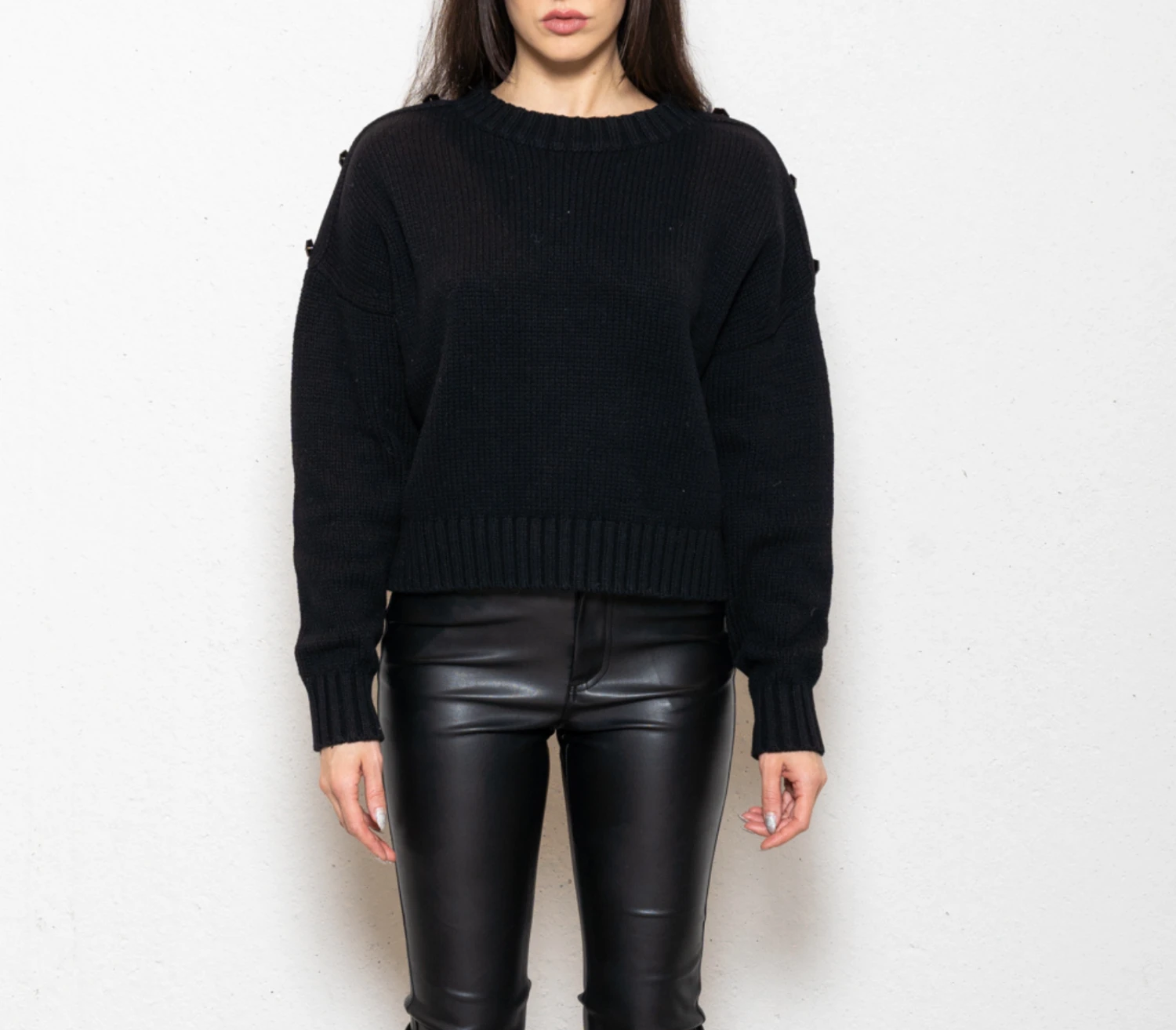 Il pullover di Cult è un capo originale quanto classico da aggiungere alla vostra collezione di maglieria. Realizzato in misto lana, presenta una fila di bottoni decorativi sulle spalle.