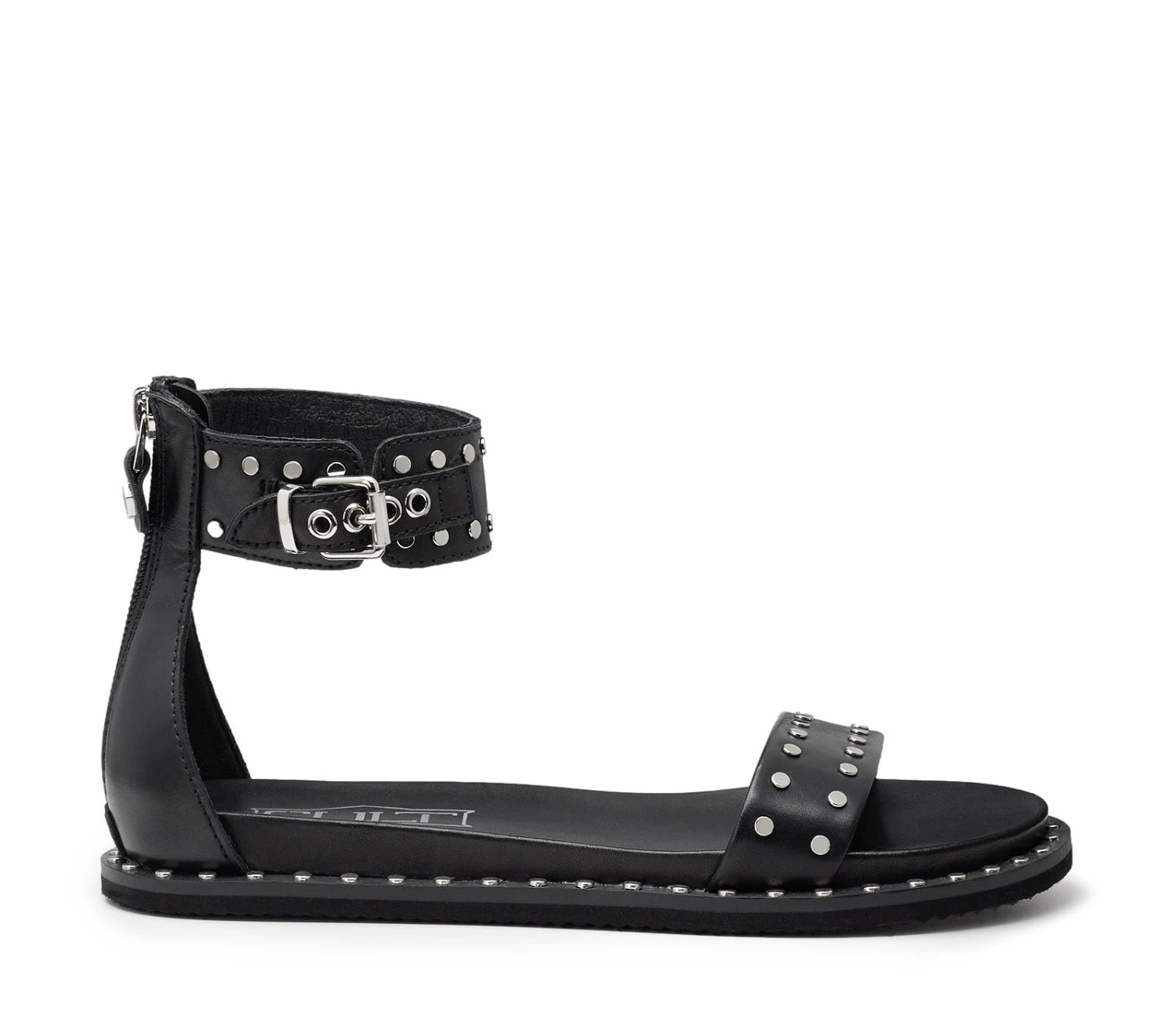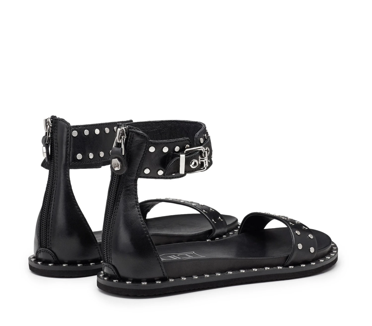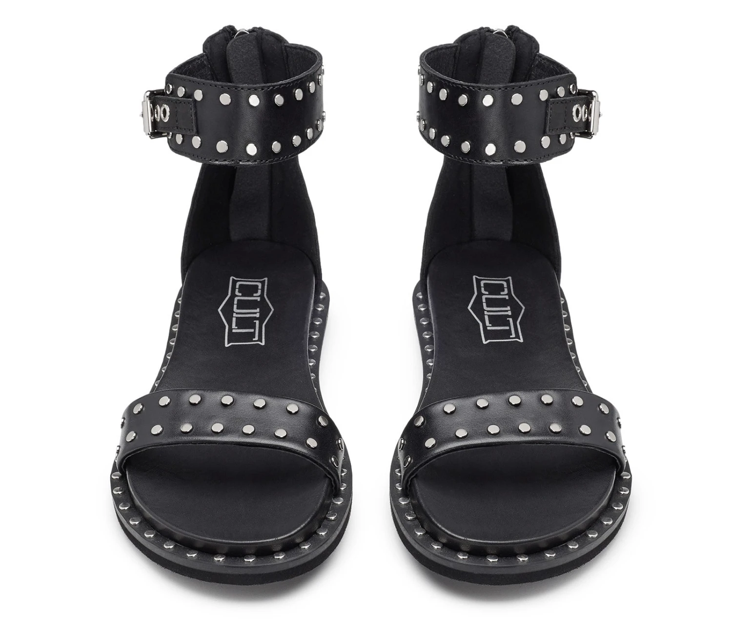 Per le fashion victims alla ricerca dei sandali flat comodi perfetti per l’estate, Cult propone questo modello in pelle nera dal carattere prezioso: presentano una fascia alla caviglia impreziosito da mini borchie metalliche, si riveleranno perfetti per accompagnarvi in città come in vacanza grazie alla pratica suola ergonomica.