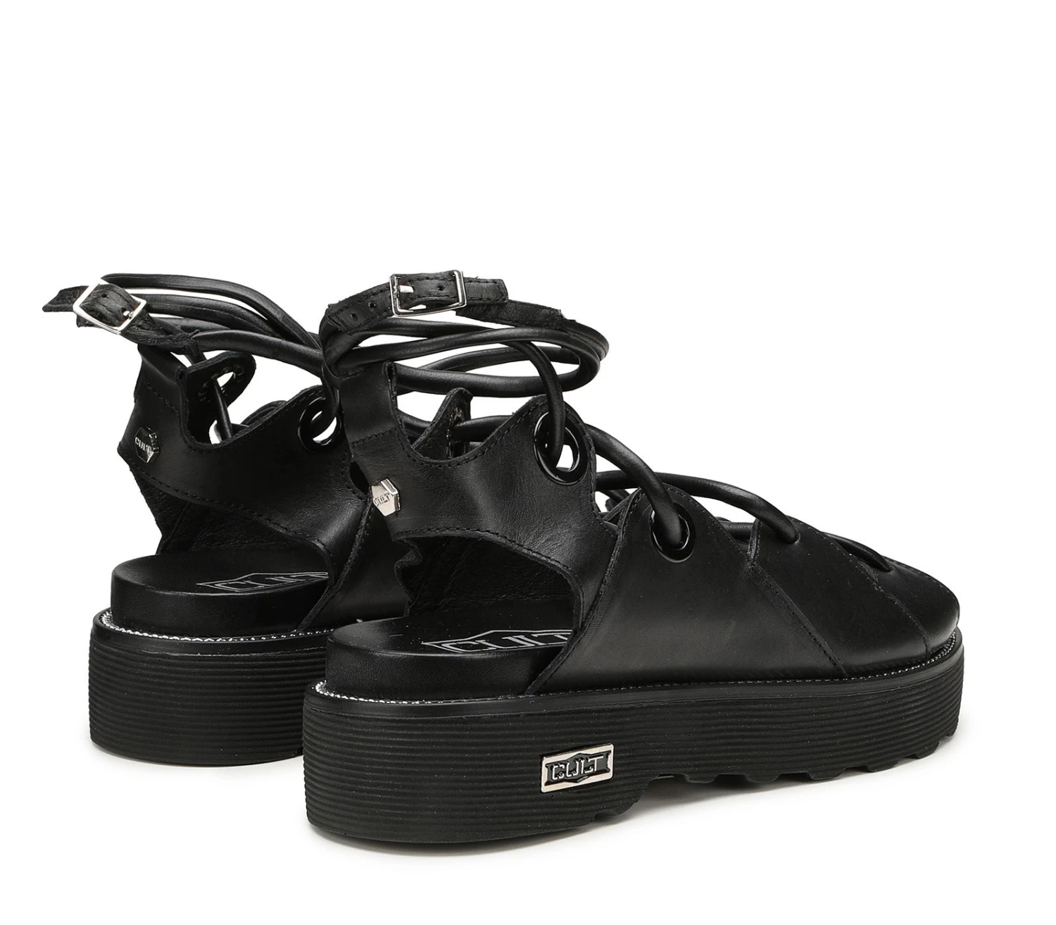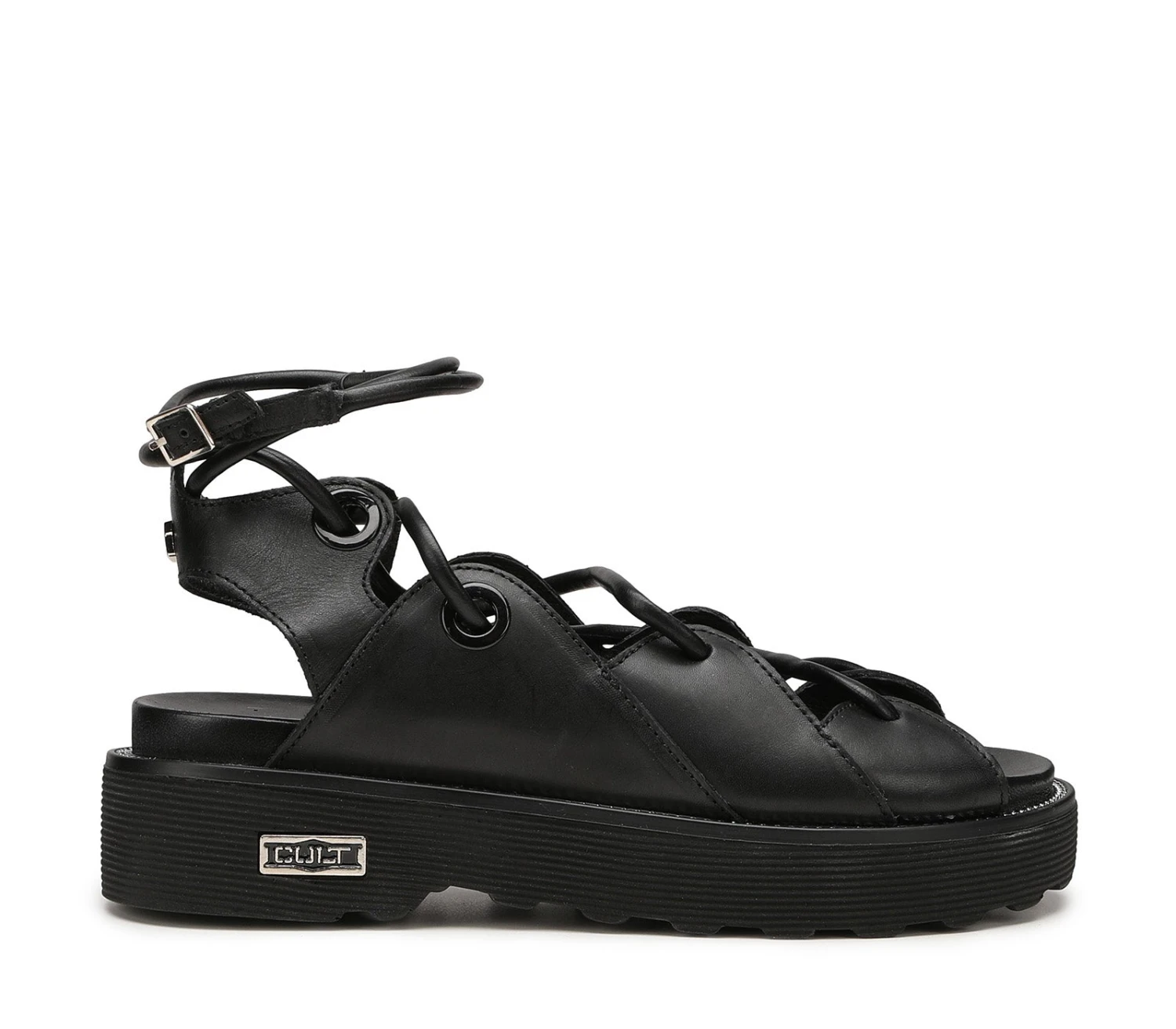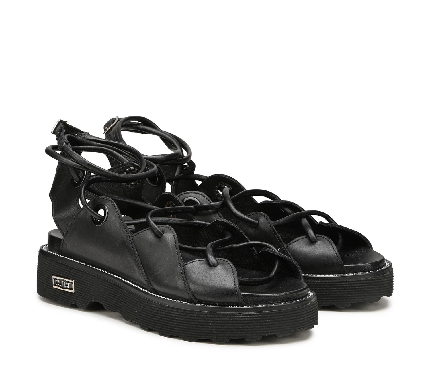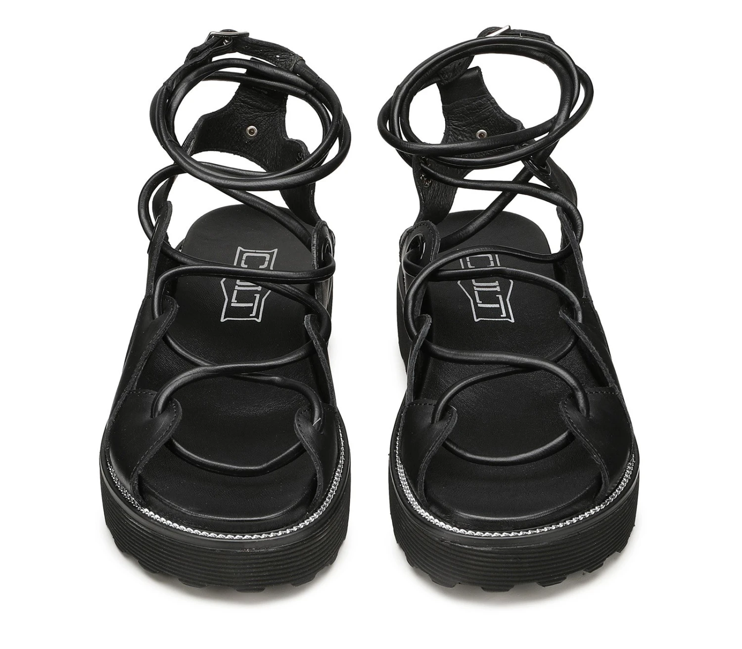 Da abbinare a un mini dress frolerale o indossare con gli shorts in denim, questo sandalo da donna è la nota audace che eleva qualsiasi look. Il modello è realizzato in pelle nera e si caratterizza per il design orginale allacciato con la chiusura effetto corpetto.